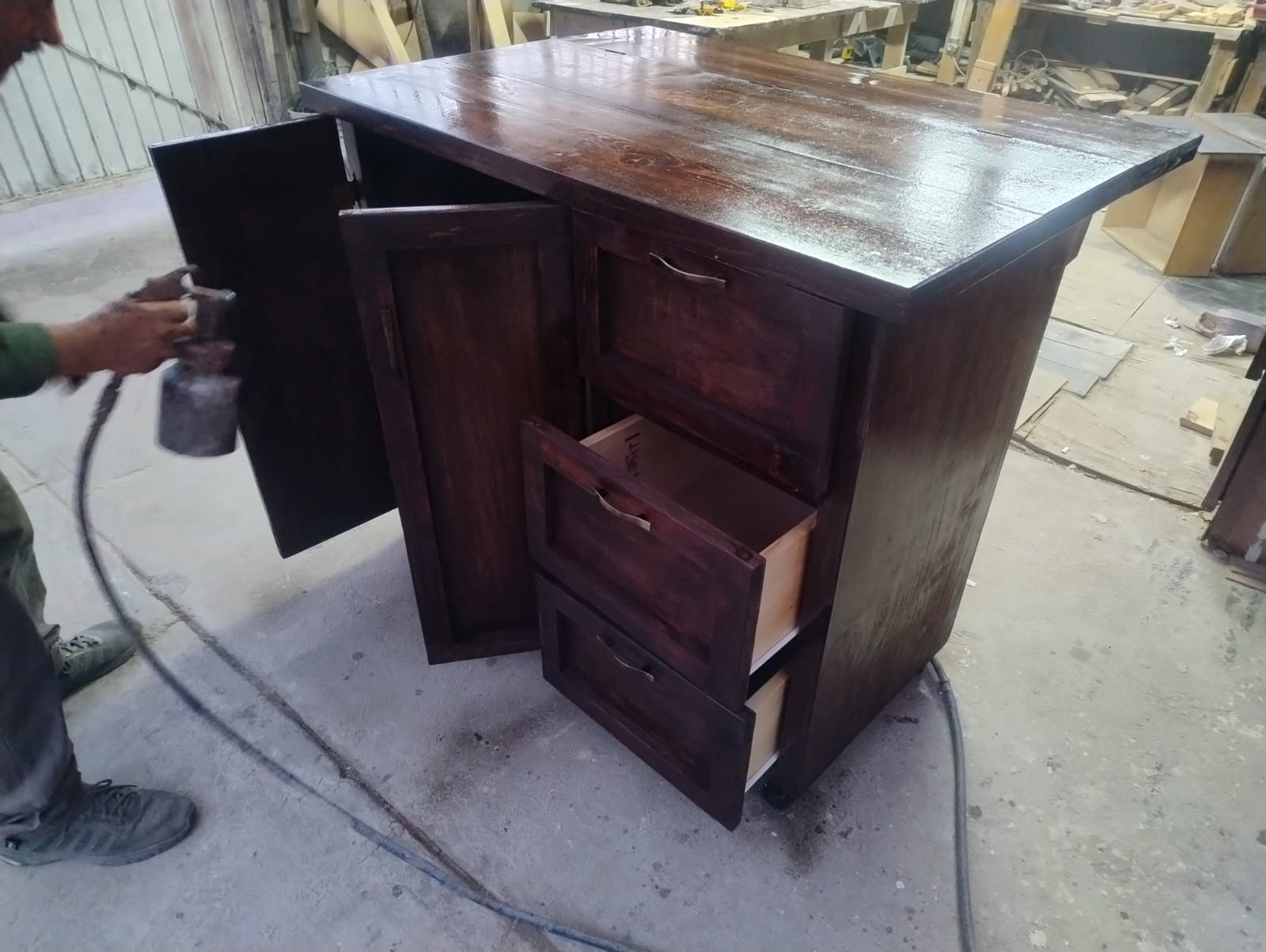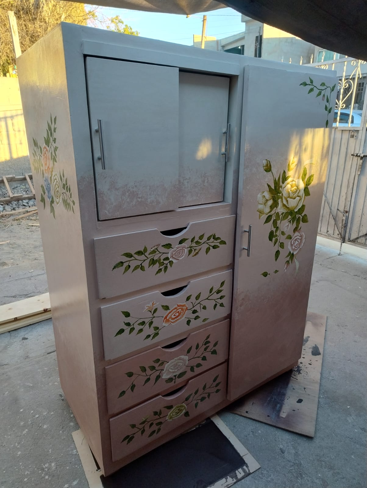 Ropero con pintura de flores rosas realizadas a mano con barniz